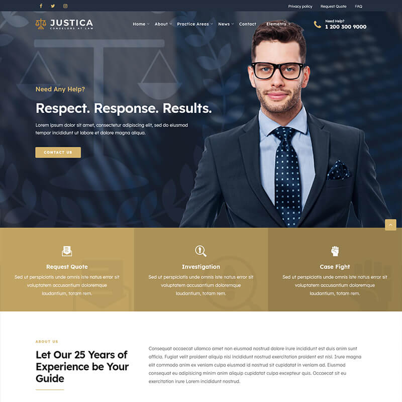 Justica - Lawyer, Attorney and Law Firms Website Template - Business Corporate Live Preview Justica is a website template crafted especially for lawyers, attorneys or any kind of business with RTL compatible! Made with Bootstrap 4.5 and all the latest web technologies. The layouts are responsive so it can fit on all devices. Get Justica Now!